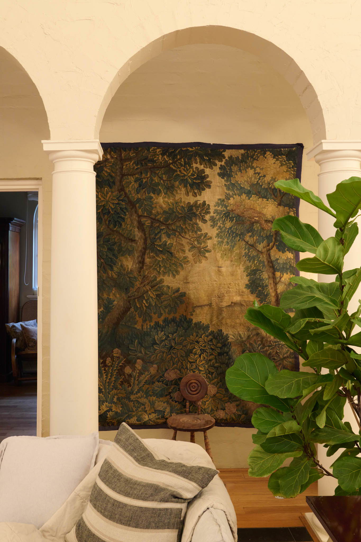 Our 17th-century Aubusson tapestry in the main hall is incredibly special to me. I’m drawn to its French history, the slow and considered craftsmanship, and the sense of narrative it carries. It has likely lived in many homes before ours, quietly observing different lives and moments, and I love imagining the stories it holds.